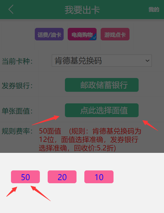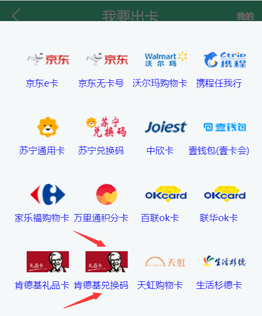 请下拉屏幕,回到头部,点击【我要卖卡】,如下图: