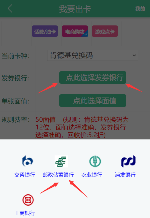 然后选择发券银行,比如【邮政储蓄银行】,如下图: