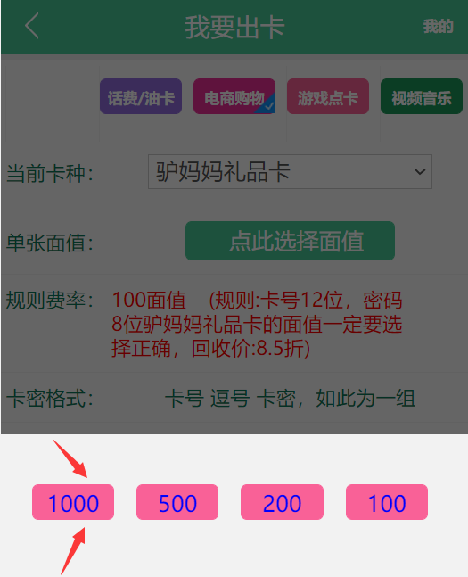 如果您手上有闲置的驴游卡请下拉回到本页面头部,点击【我要卖卡】,如下图: