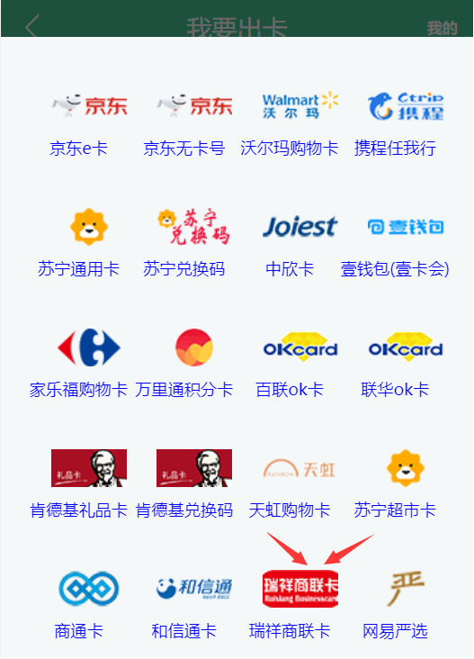 先下拉回到本页面头部,点击【我要卖卡】,如下图: