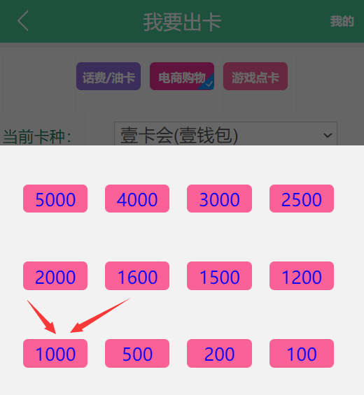 先下拉回到本页面头部,点击【我要卖卡】,如下图: