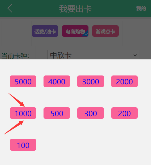 然后进入我要卖卡页面,点击【电商购物】,如下图: