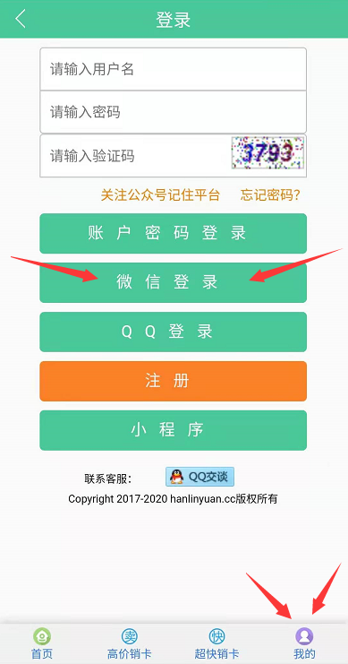 然后点【我的】,再选择对应的快捷登录方式,如下图: