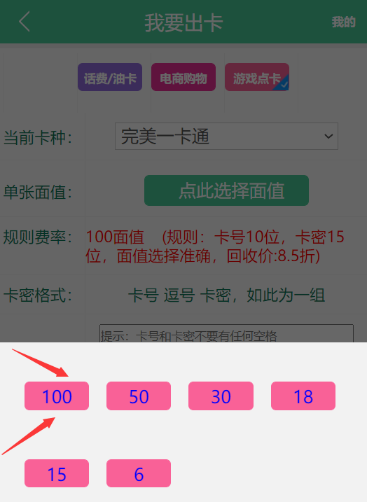 然后选择好面值,比如100,如下图: