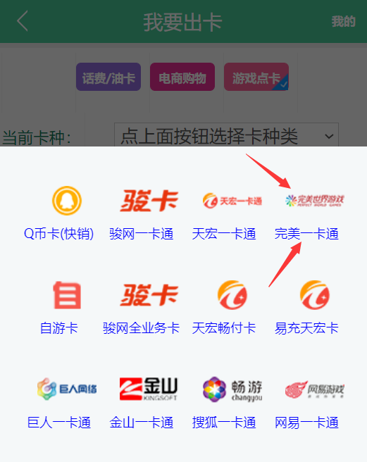 然后选择【游戏点卡】,如下图: